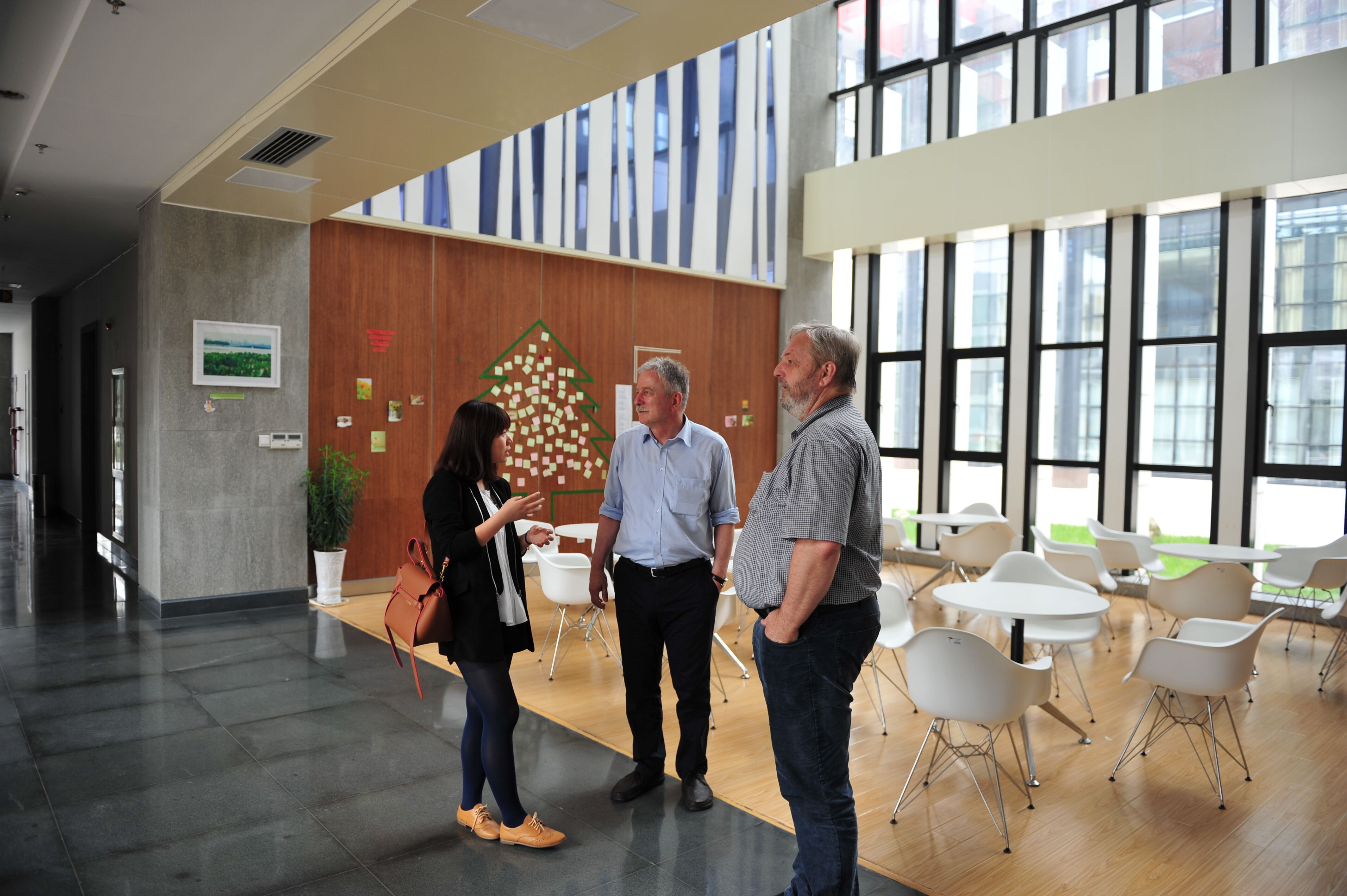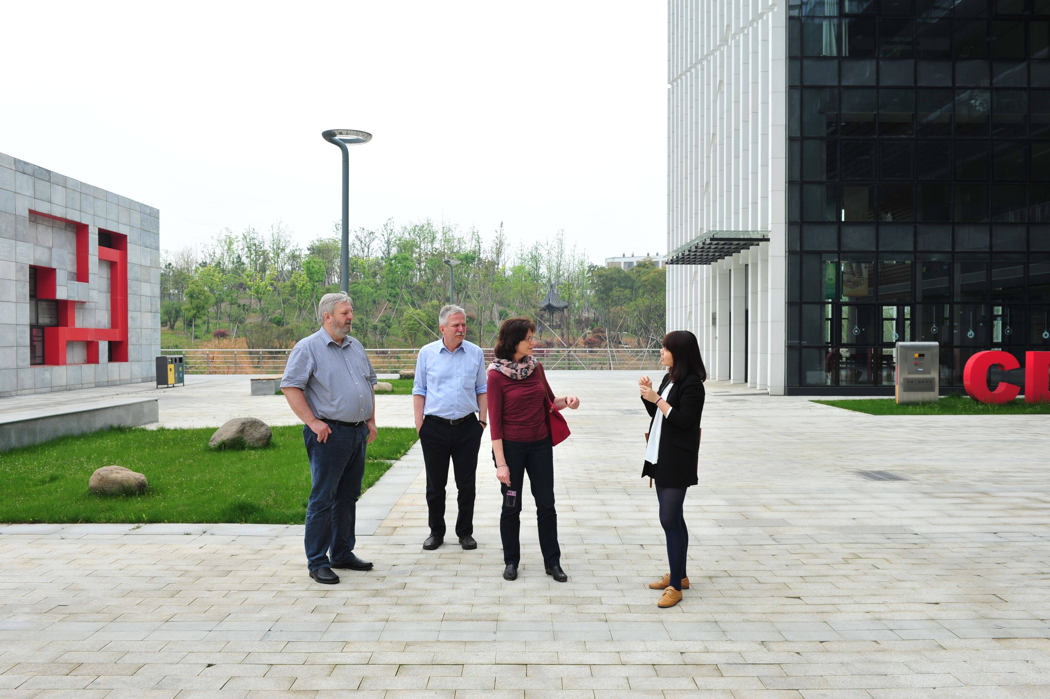 2015年4月18日,来自德意志学术交流中心土木工程专业的两位评估专家Löns女士、Maurial先生以及合作院校吕贝克应用科技大学副校长Litz先生一行,在中文无码 土木工程专业负责人文献民老师的带领下,莅临参观了浙江科技学院安吉校区。当天他们察看了中文无码 办公室、学院学生专业教室及以及I-Cubic咖啡吧等学院设施。参观过程中,他们盛赞安吉校区风景优美,是学习的好地方。对于学院I-Cubic咖啡吧努力创造外语学习环境的举措,也表示了肯定。