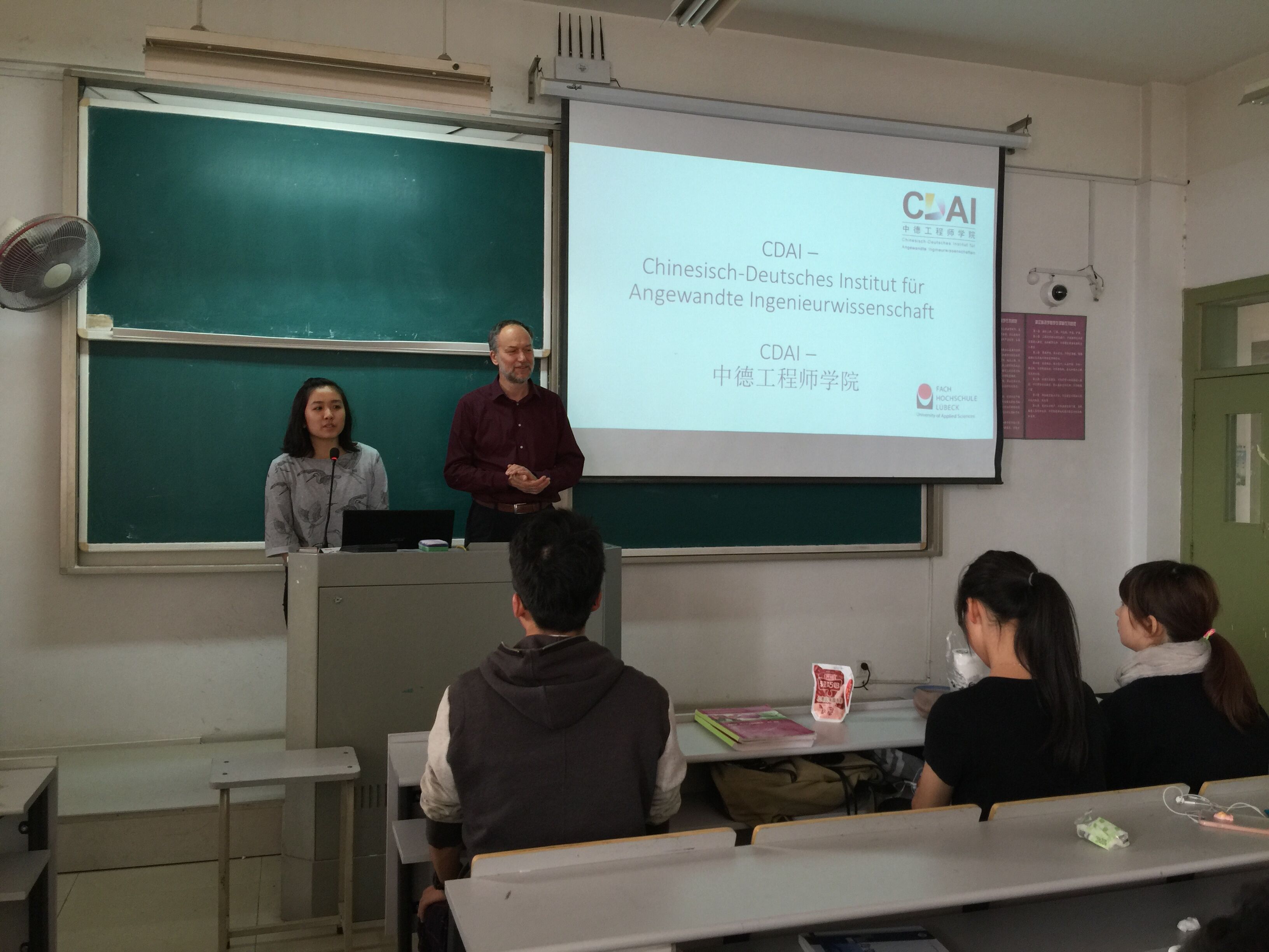 10月22日下午1时30分,土木专业14级学生与德方教授的见面会在A教学楼409教室中举行。参与活动的有来自吕贝克应用科技大学的3位德国教授Prof. Grottker,Prof. Lonrenzl,Prof. König,邓鸿羽女士,Grässner女士,CDAI的文献民教授和王俐老师及中文无码 土木工程专业的全体学生。