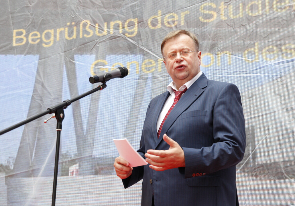 德国西海岸应用科技大学科尔施校长致辞,希望同学们在学习过程中注重自身实践能力的培养,并勉励大家学好德语,使自己具备突出的德语能力。