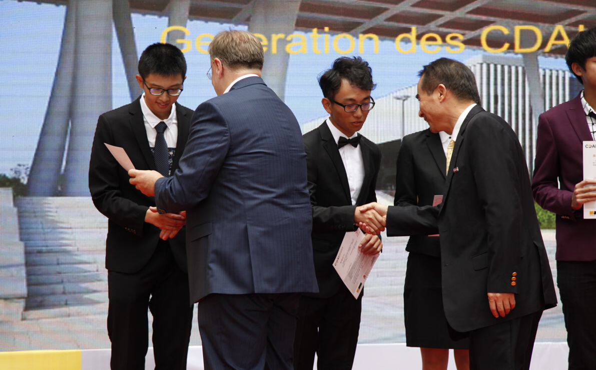 浙江科技学院副校长冯军宣读了新生奖学金获奖名单。出席典礼的中德双方高校领导和教授们为获奖同学颁发证书。