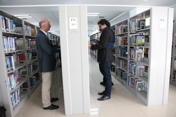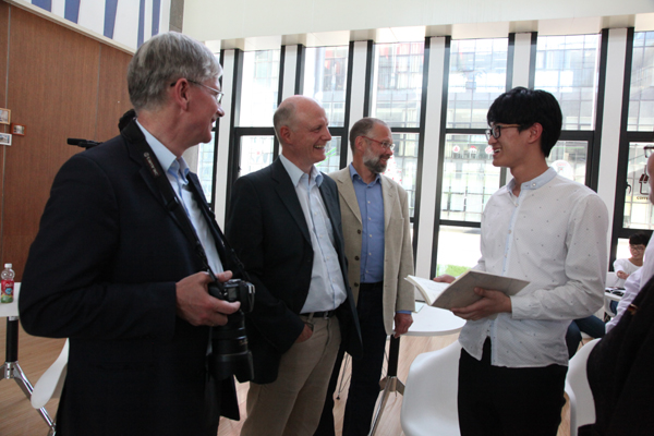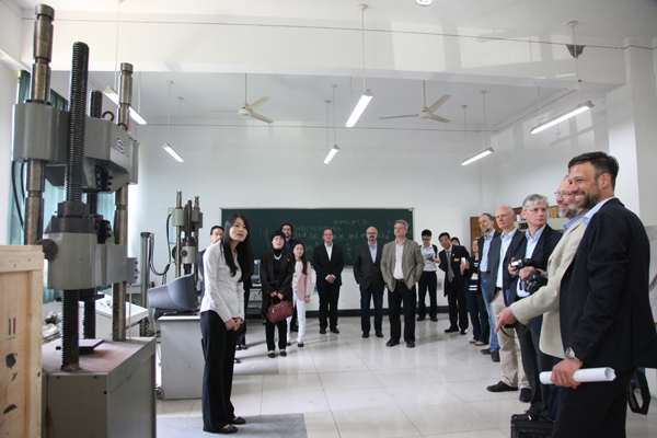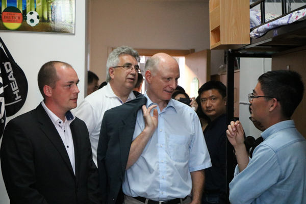 11日,专家组对我校两个校区进行了实地考察。副校长冯军、郑友取分别在两个校区接待了专家组一行。冯军向专家组介绍了我校中德合作办学经验,简要介绍安吉校区建设情况。郑友取对专家组专家的到来表示欢迎,并介绍了我校总体办学情况和与德国合作办学情况。专家组参观了学校图书馆、相关实验室、中文无码 和中德友谊园,并考察了安吉校区的中文无码 楼、机房、相关实验室以及学生食堂、宿舍、图书馆和活动中心等地。