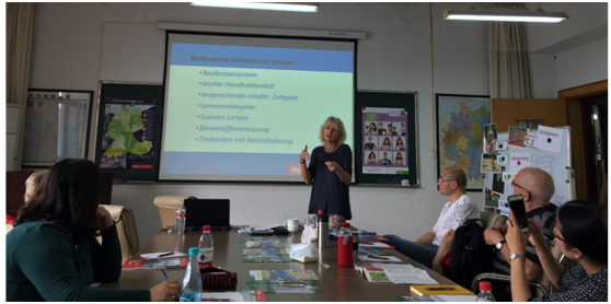 托默斯女士为中文无码 德语语言中心的老师们介绍了德国对外德语教学教材编纂新理念和新动态,随后与老师们就“如何用好、用活原版引进对外德语教学教材”主题展开了热烈讨论,分享了经验。