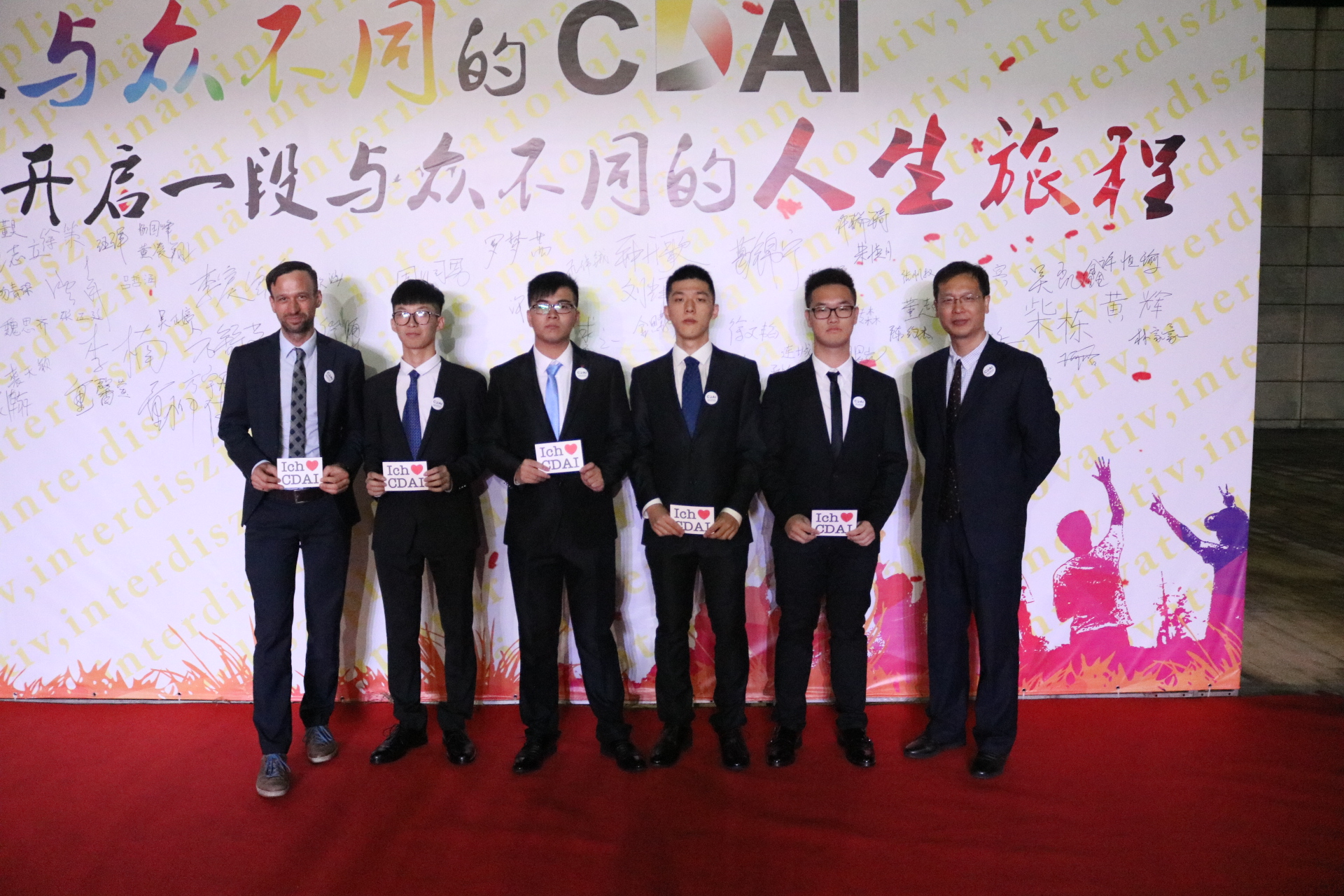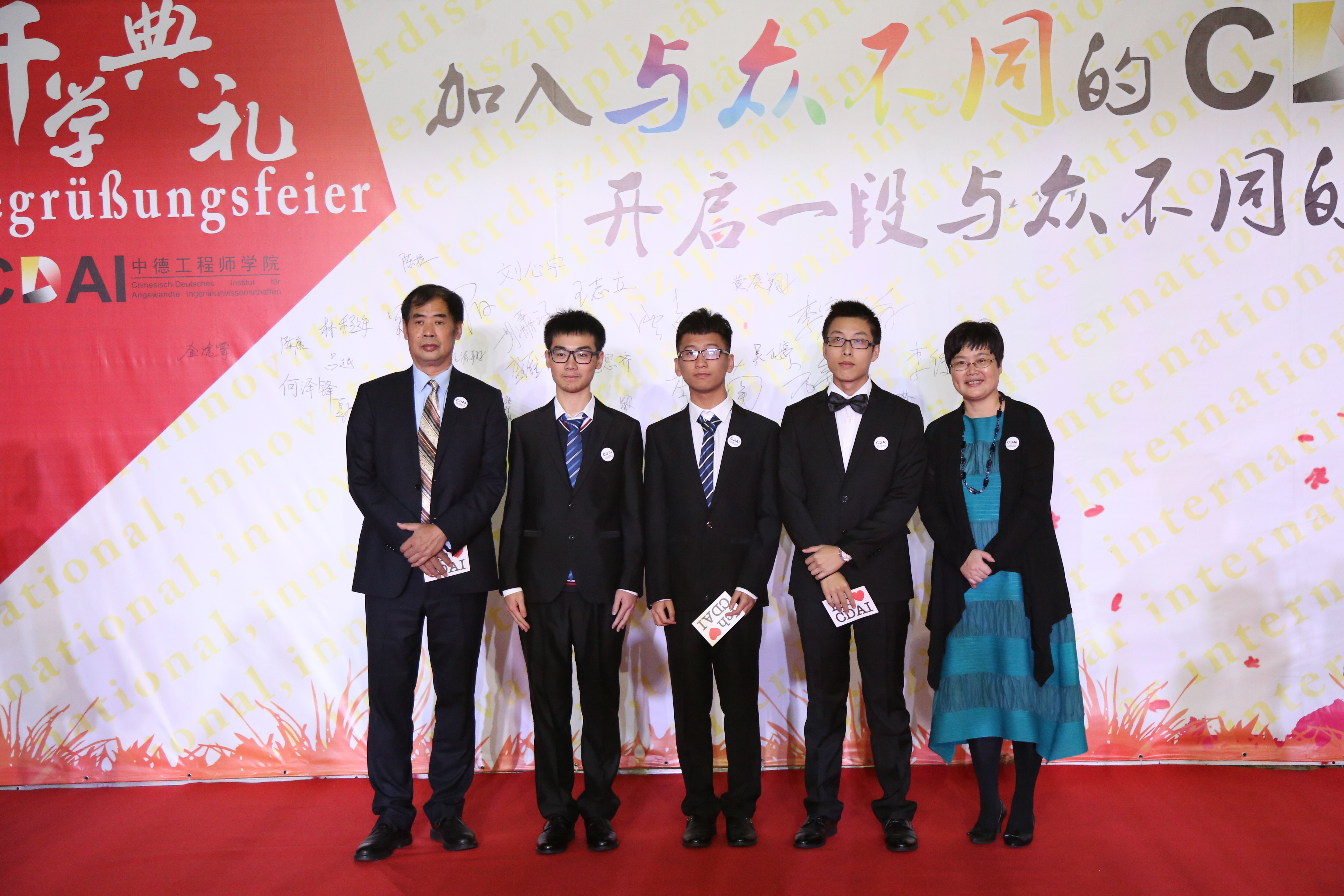 16级新生于晚17:30陆续走上红毯,由中文无码 院长、教学院长及专业负责人分别授予院徽和“我爱CDAI”的明信片,新生们还在题有“加入与众不同的CDAI,开启一段与众不同的人生旅程”的签名墙上签字并合影留念。同时,学院还为新生们准备了内容丰富的各类展览,使新生们加强对学校中德合作历史、学院发展历程的了解。学院机器人团队的展示也引发了新生们浓烈的兴趣。