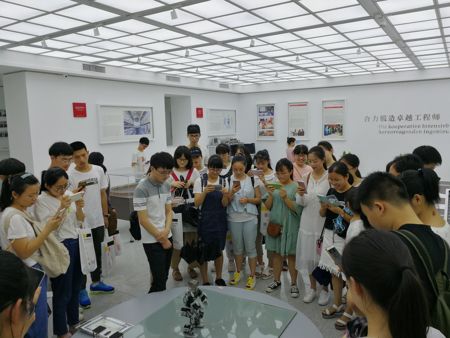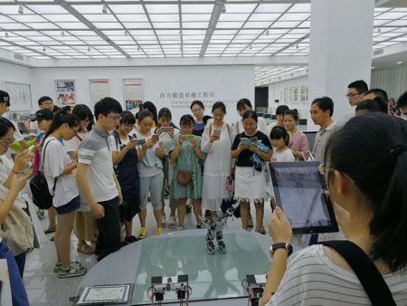参观中德合作馆时,同学们对机器人展现出了浓厚的兴趣,纷纷驻足观看。