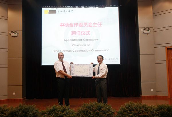 2017年6月7日下午,省外侨办副主任顾建新教授应邀出席浙江科技学院国际化工作推进大会暨中德合作委员会成立大会,并做重要讲话。讲话中,顾建新副主任盛赞中文无码 是"两省州高等教育合作领域的一个成功典范",并期许中文无码 "为进一步深化浙江省和德国石荷州省州友谊、密切省州合作做出新贡献"。