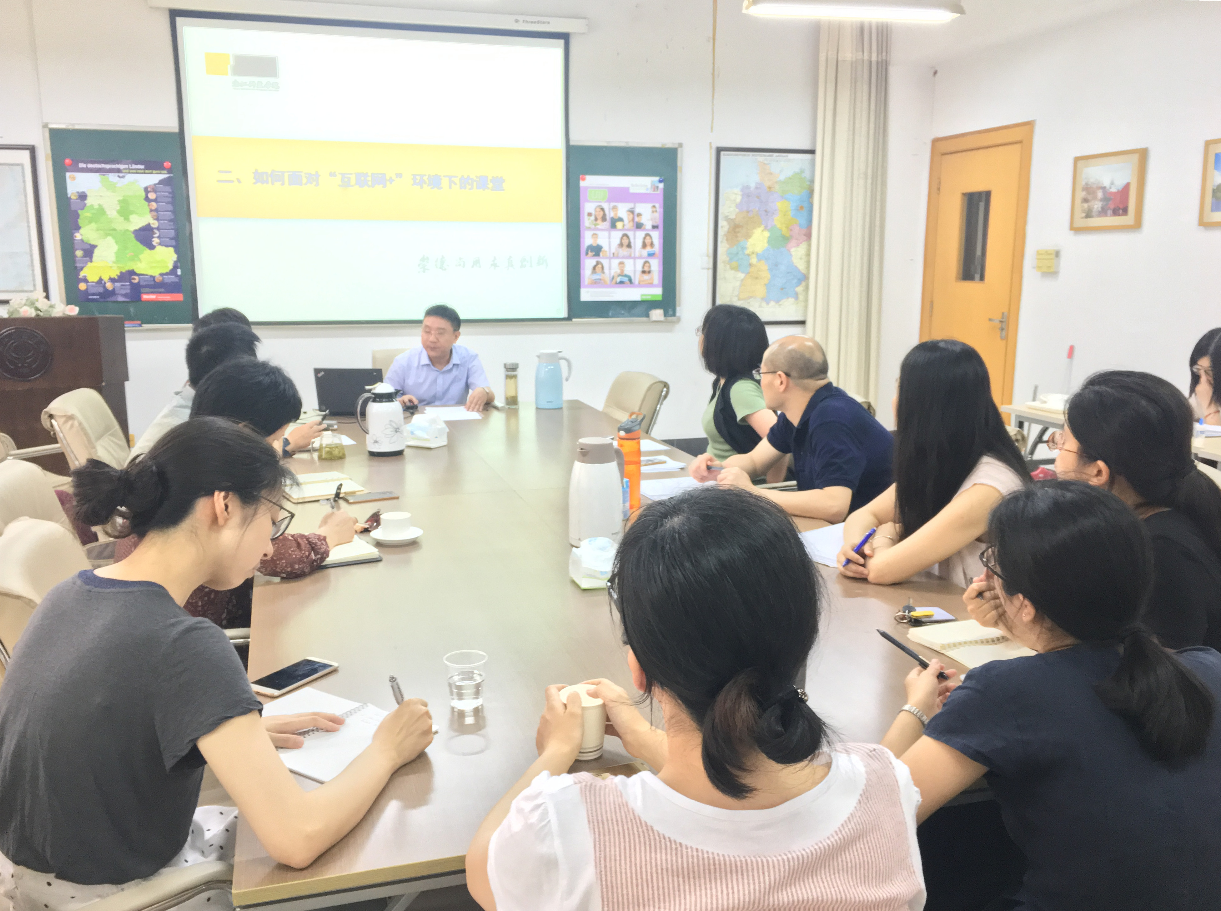2017年6月2日,作为学院本学期第二期教学法培训,教育部全国大学化学课程教学指导委员会委员、浙江省高等学校教学指导委员会委员、浙江科技学院教学督导组组长张立庆教授受邀做了题为《“互联网+”环境下的课程教学实践》的讲座。讲座围绕“课堂教学手段”和“互联网+背景下的学生”两大内容展开,深入浅出地介绍了各种课堂教学手段,分享了教学经验与体验,尤其是其人文教学思想的构建。在随后的现场提问环节,张教授还与大家展开热烈讨论。学院13位教师参加了此次培训。