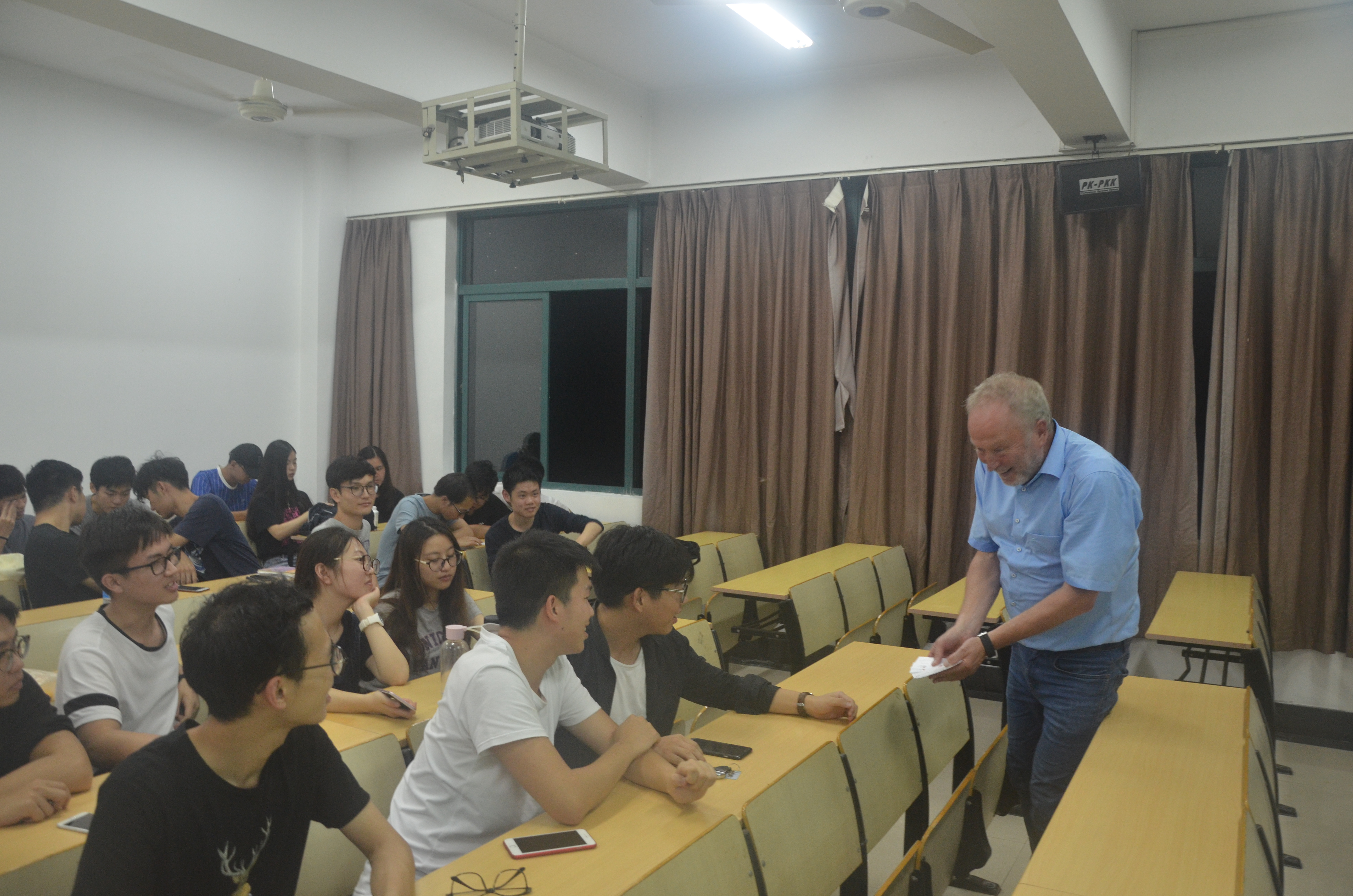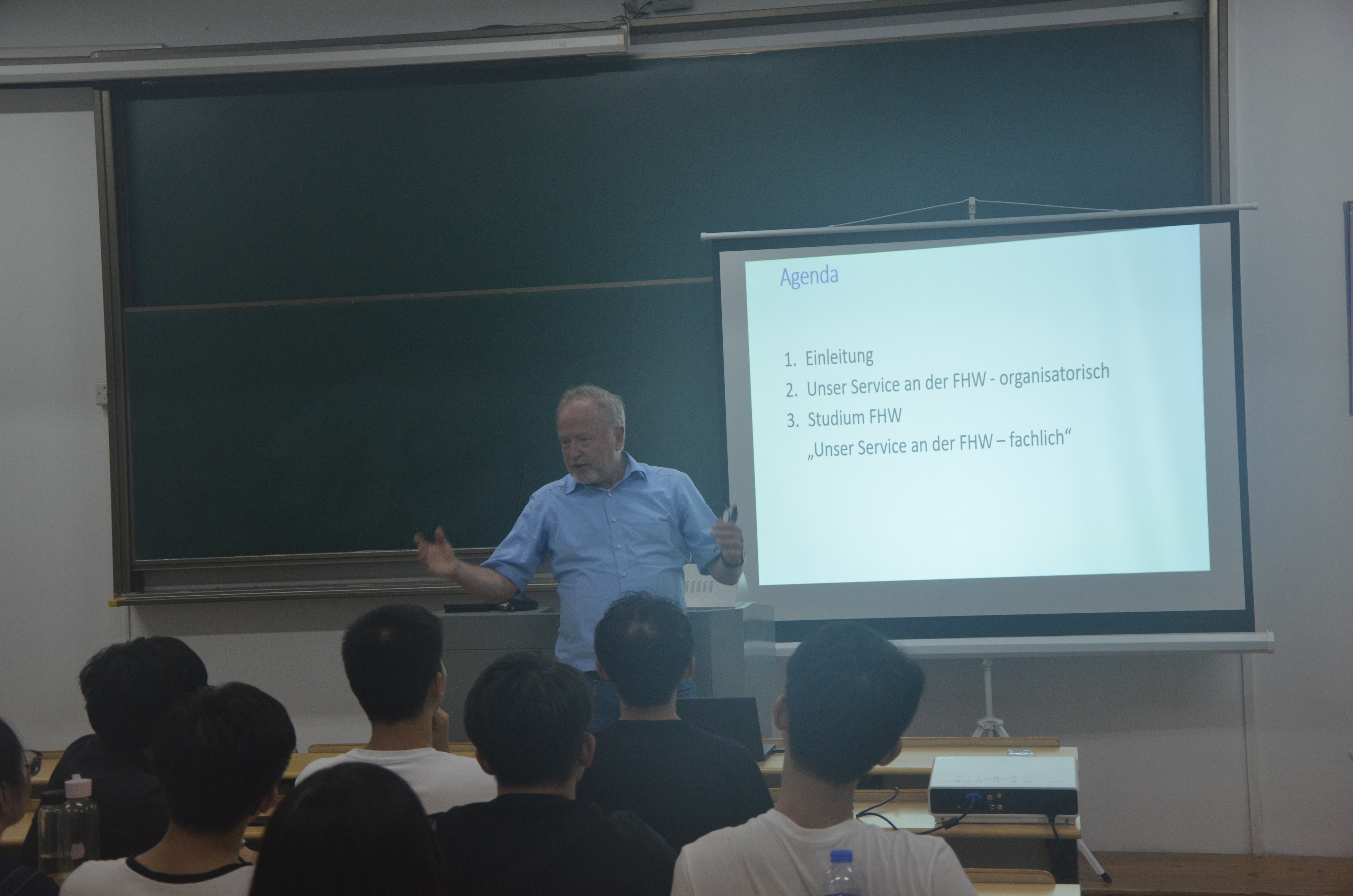 2017年9月28日18时30分于浙江科技学院小和山小区B4楼421教室,德国西海岸应用科技大学工程学院院长、德方专业负责人Detlef Jensen教授向14和15级电气专业学生进行了 关于“西海岸应用科技大学对中文无码 交换生生活以及学习方面服务”的讲座。