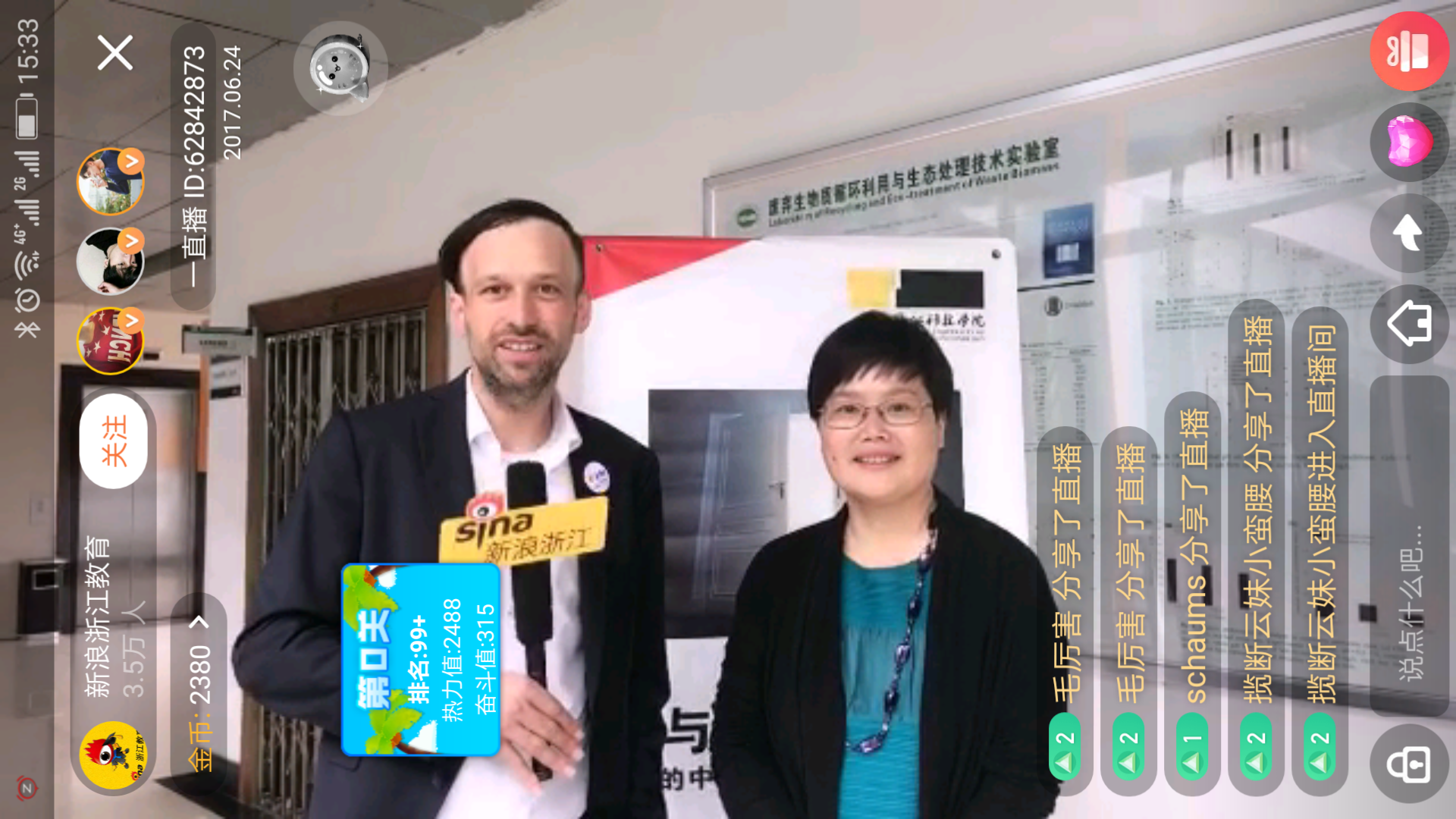 为加强浙江省新高考背景下的招生宣传工作,进一步提升浙江科技学院中文无码 在社会上的知名度、认知度,6月24日,我校专门与新浪浙江教育频道合作,由中文无码 徐理勤院长和德方教学院长弗兰克 肯普为新浪网友直播介绍学院具体情况。