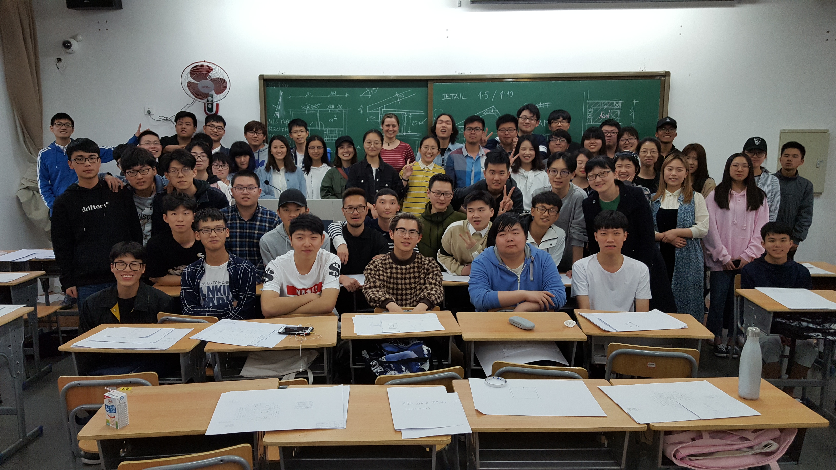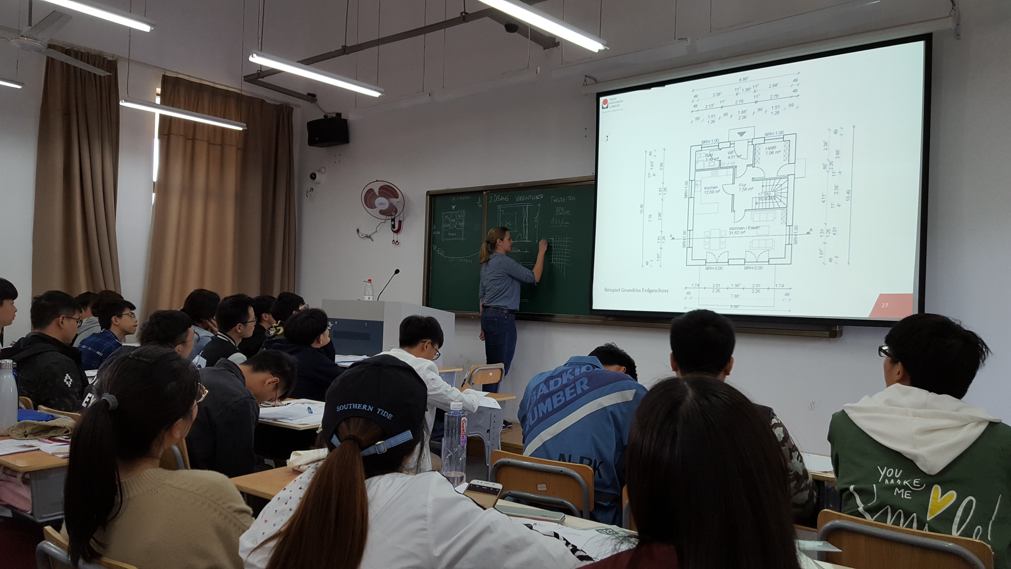 2018年4月9日,来自德国吕贝克应用科技大学的助教Jan Osten与Wiebke Martensen,为中文无码 土木工程专业2016级学生讲授为期一周的建筑构造补充课程。在一周时间内,两位教师充分安排时间进行课程设计教学,以德国普通家庭住宅为例,从最基本的气泡图开始进行设计,逐步将学生心中想象的住宅实现为实际建筑施工图。