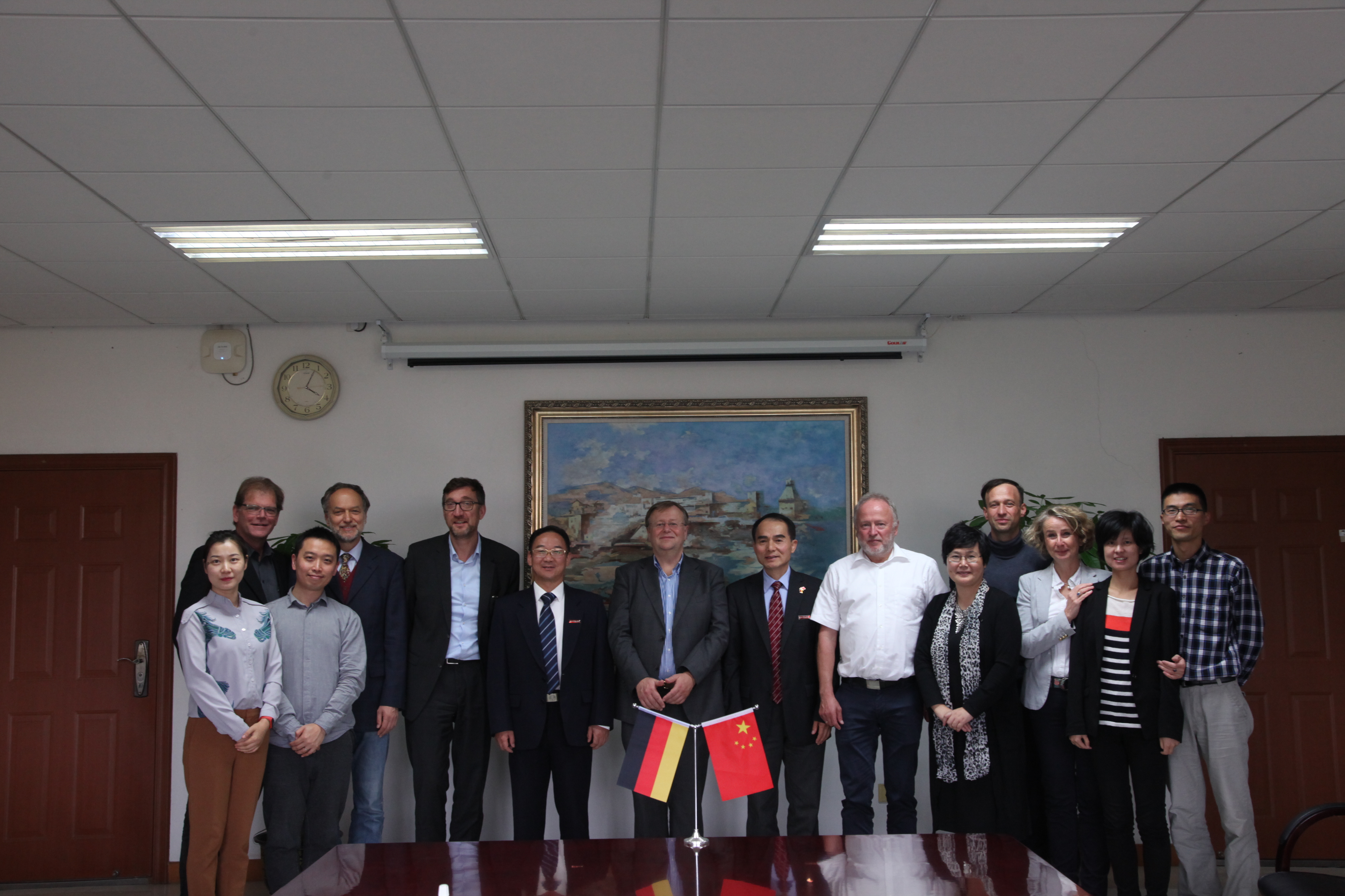 2018年10月31日,中文无码 第11次联合管理委员会会议在我校召开。校长叶高翔教授、副校长冯军研究员、西海岸应用科学大学校长哈诺·科尔史(Hanno Kirsch)教授、吕贝克应用科技大学副校长弗郎克•施瓦彻(Frank Schwartze)教授、电气专业德方专业负责人德特勒夫•延森(Detlef Jensen)教授、土木专业德方专业负责人玛蒂亚斯•格罗特克(Matthias Grottker)教授、院长徐理勤研究员、教学院长弗兰克·坎普(Frank Kemper)教授、国际处副处长骆均炎教授等联合管理委员会成员参加了会议。