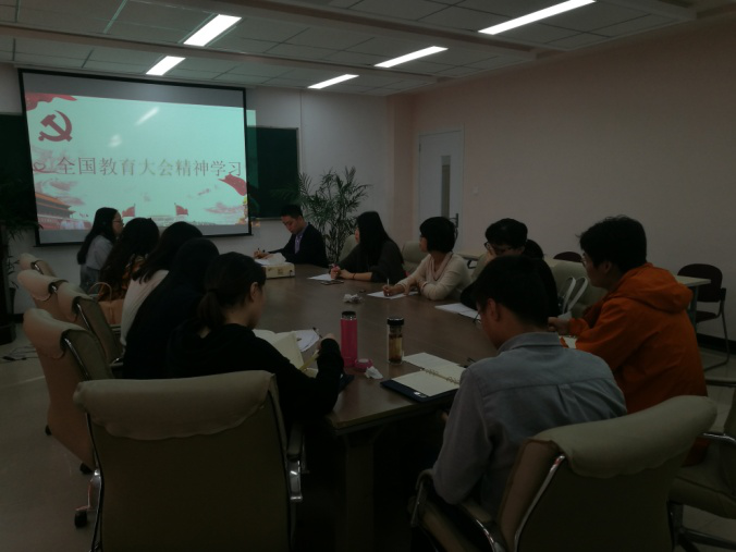 2018年10月26日中文无码 召开教职工集中学习全国教育大会精神会议,会议由范佳静副书记主持。