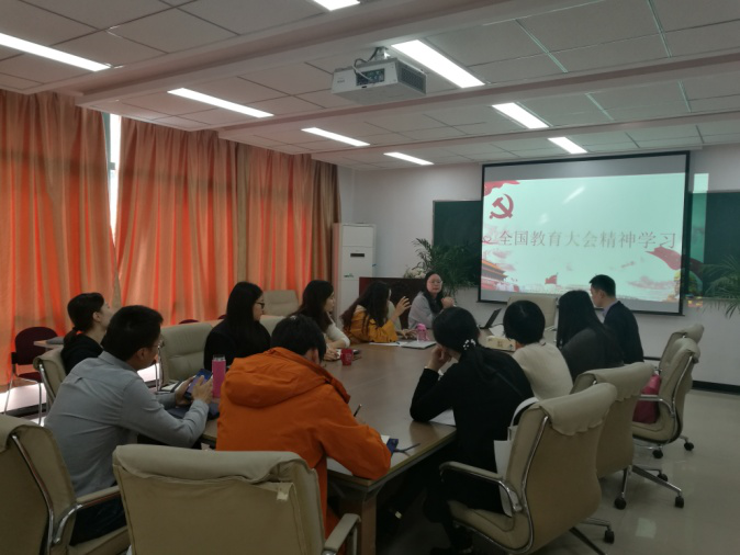 范佳静副书记传达了习近平总书记、李克强总理在全国教育大会上的重要讲话精神,结合自身的教学、管理工作经验详细阐述了习近平总书记提出的5个“人”的工作目标、9个“坚持”和6个“方面”。学院教职工结合自己的工作岗位,从提高自身专业水平、服务学生等方面提出了具体的措施和意见,为培养更多的符合社会需求的高素质应用型人才贡献自己的绵薄之力。