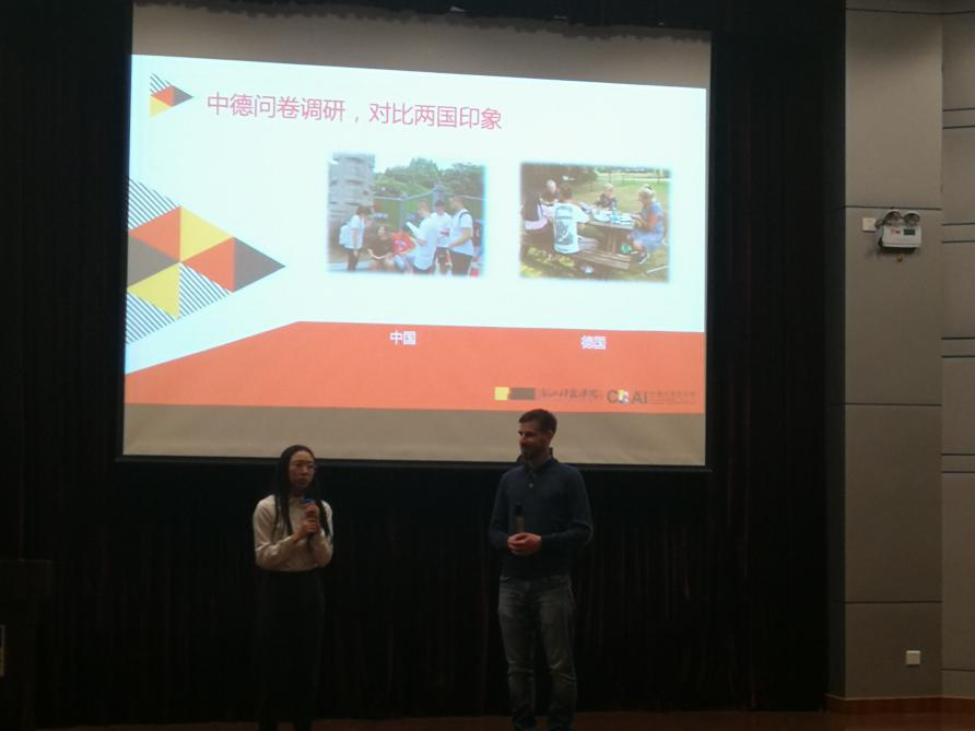 大会上,中文无码 代表吴双同学通过“参观主题学习,增强党性修养”、“德国名企参观,感受科技力量”以及“多地街头参访,一窥中德合作”三个方面,向大家详细介绍了这次以“与改革同行,与世界同步”为主题的暑期社会实践活动。从观看《厉害了我的国》感受中国崛起的热泪盈眶,到参观浙江美术馆学习改革开放背景下敢为人先的时代精神,再到赴井冈山革命博物馆了解革命老区人民艰苦奋斗的历程,Verbreiter团队成员们通过观展、看视频,提高党性修养。在德国吕贝克,团队成员参观了德国石荷州“H+H”公司、“Dräge”公司。干净的车间,现代化的生产及科学的管理,成员们近距离感受到科技的魅力和德国工业4.0的先进。同时团队精心准备了中德两个版本的调查问卷,分别在杭州与德国海德进行发放。共回收有效问卷73份。通过数据对比分析对于中德两国人民在产品、技术和国家战略的认识方面有了更直观的了解。