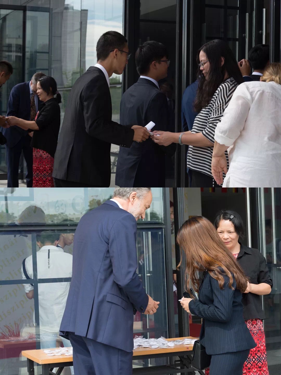 党委副书记赵东福宣读获得2018级新生奖学金名单,中德双方领导为获奖者颁奖。18级学生李文纪代表新生上台发言,畅谈感悟、展望未来,院长徐理勤、教学院长肯普鼓励同学们在接下来的大学生活中,自强不息,独立思考,永葆好奇,不断创新。