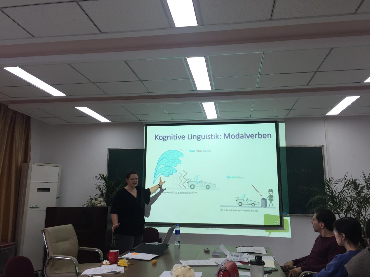 2018年11月3日,德国吕贝克应用科学大学德语教师Dorle Stecher为中文无码 全体德语教师进行以德语语法教学为主题的培训。