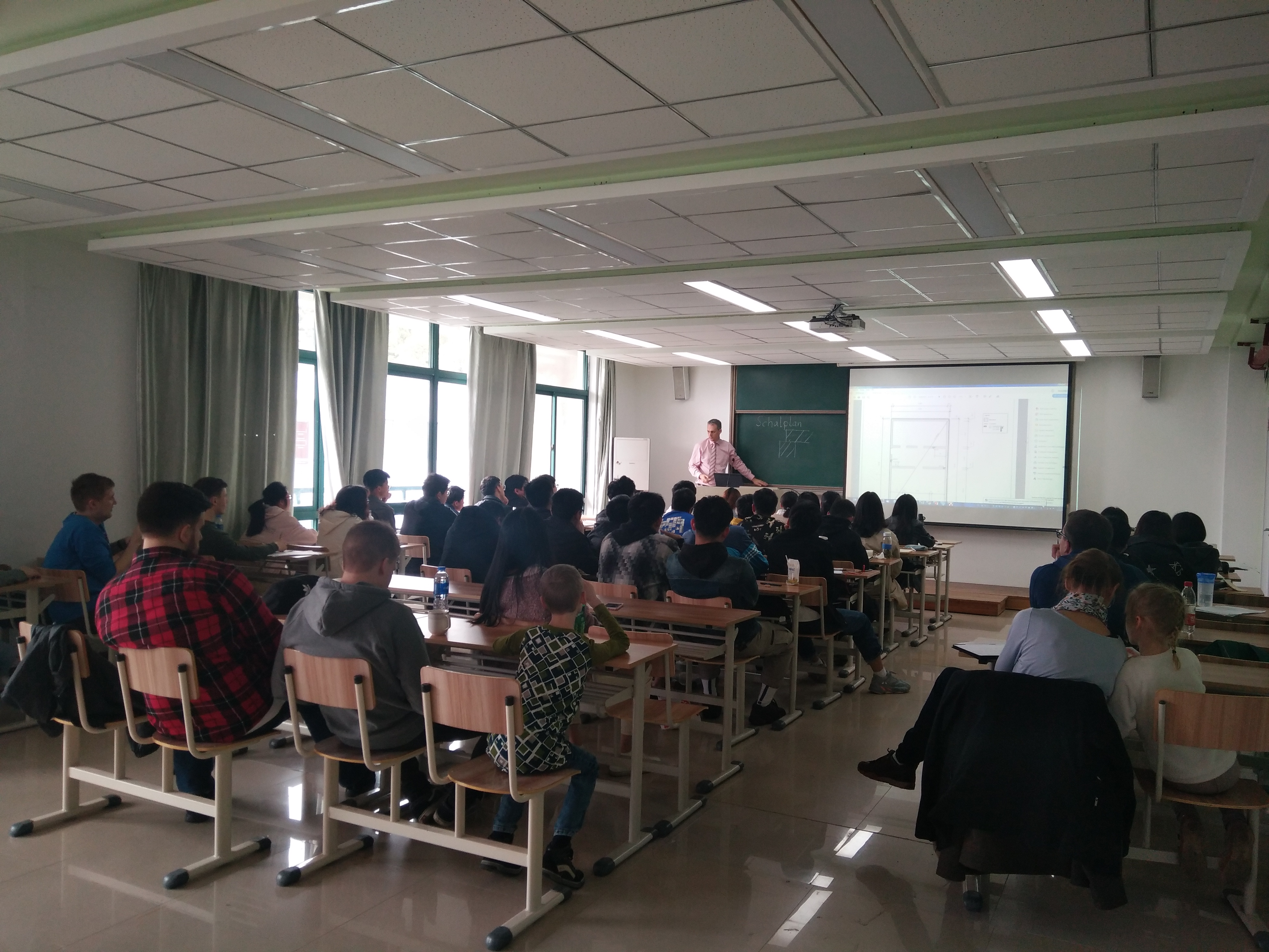来访期间,德方代表团为中文无码 土木工程专业16级学生进行承载结构设计的集中辅导课,指导中方学生计算并画出相应的结构图、模板图和配筋图。通过五天的辅导课学习,中方学生进一步了解德国授课的模式和方法,也增进了与德国学生之间的交流。此外,比约恩·埃尔舍教授(Prof. Björn Elsche)、娜迪娜·埃尔舍研究员还为中文无码 土木工程专业16级学生进行出国选拔考试,共有3名学生成功入选。