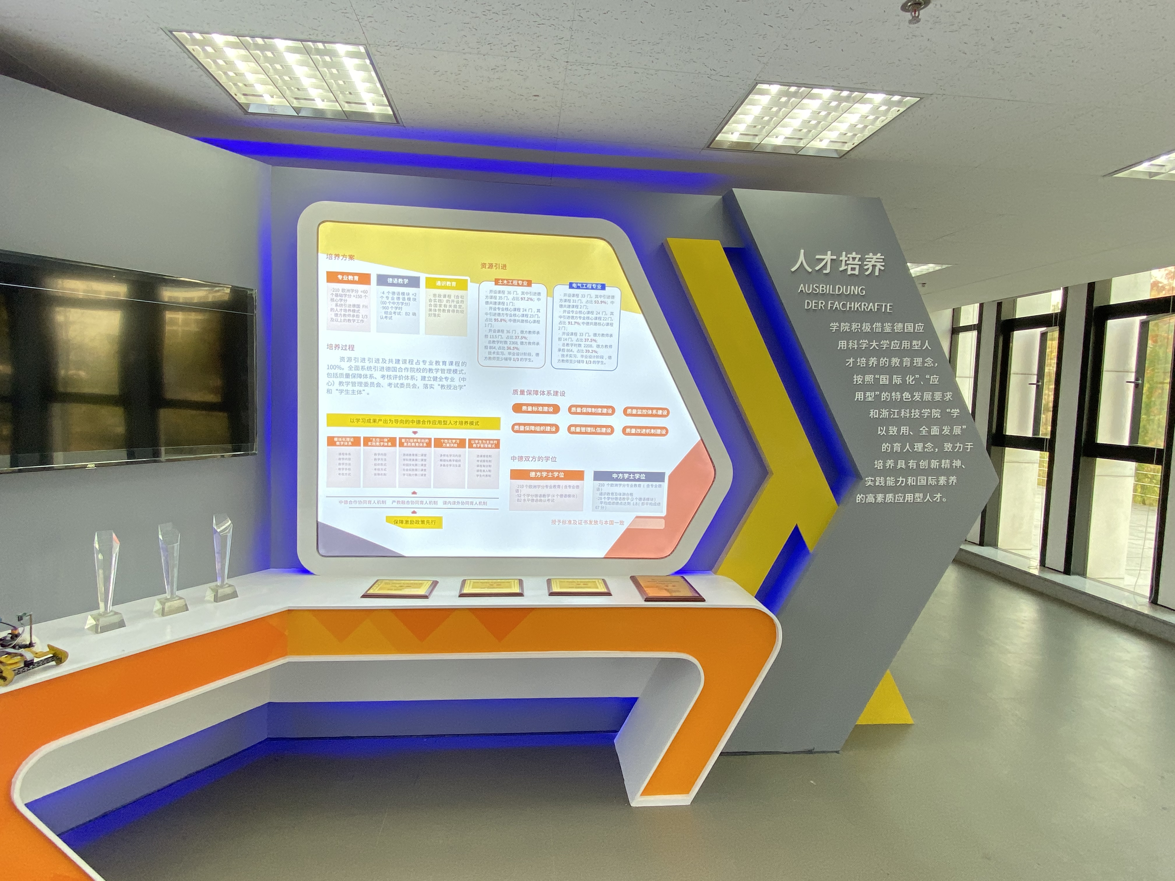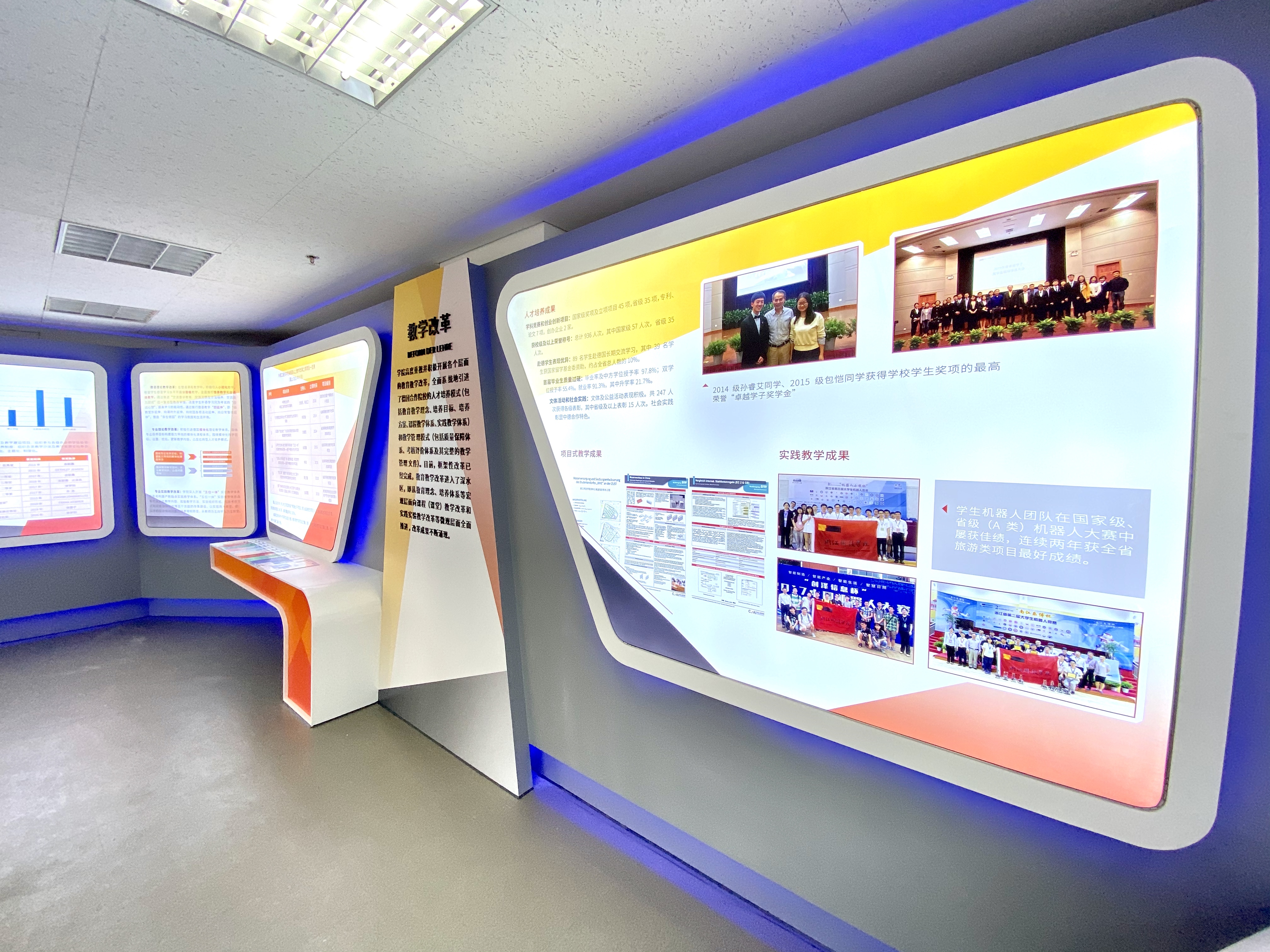 中文无码 安吉校区为学校更名大学现场考察点之一。为响应学校冲刺更名大学工作总体部署,助力更名大学目标顺利实现,中文无码 总结过去5年的办学历程和成效,专门设立办学成果布展项目,充分展示学院中德合作的办学经验和相关成果。经过2个多月的努力,项目顺利完工。11月21日,由校资产处组织,监察处、校办、计财处、工会(教代会)代表、中文无码 等部门派员及供货单位代表,在安吉校区中德楼E座1层/D座1层现场进行项目进行现场验收。验收工作圆满完成。
