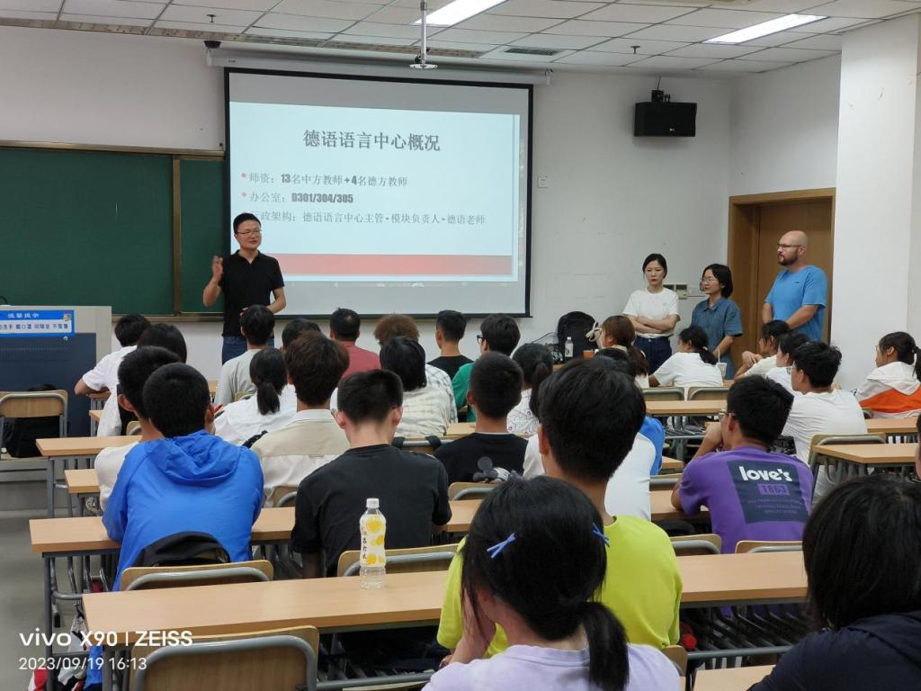 9月19日,德语中心主任丁佳宁带领大一模块德语教师和外教Herr Dahlke共同为23级新生带来德语主题分享。