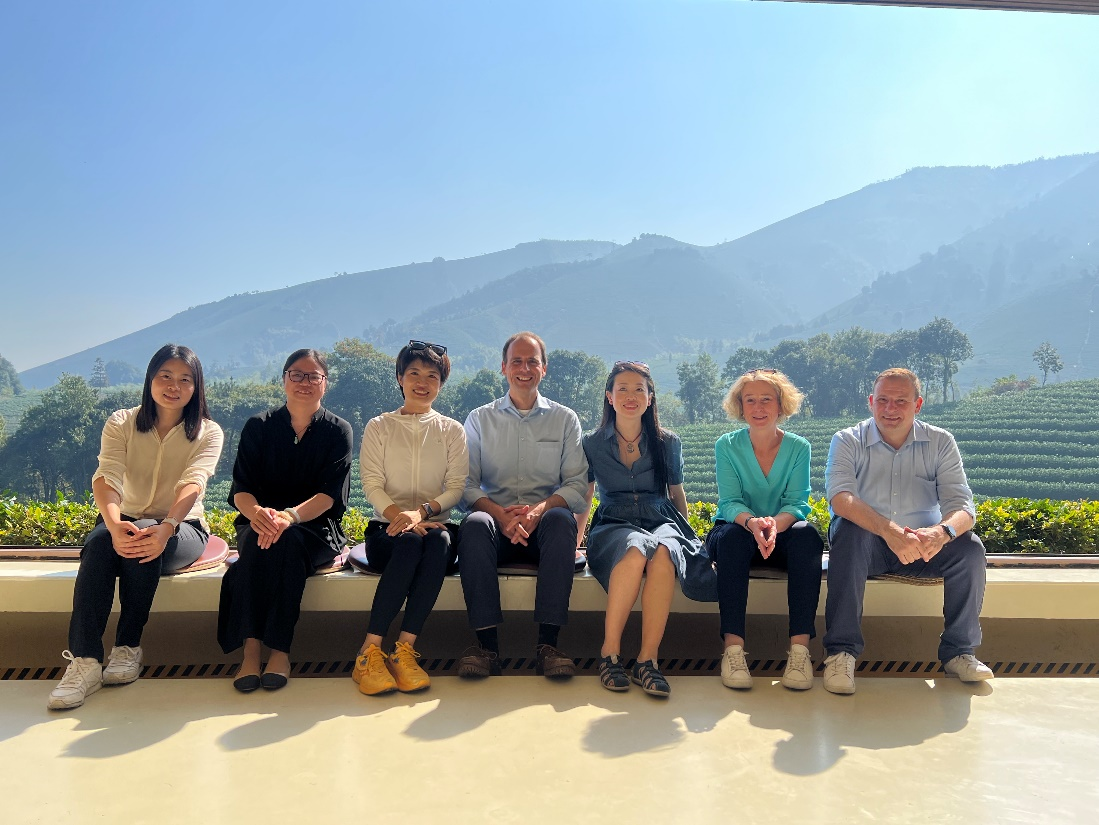 2023年11月5日,学院院长薛文、直属党支部书记范佳静、土木专业教师金韶霞陪同来自德国吕贝克应用科技大学中文无码 德国办公室主任Nicola Graessner女士、土木工程专业德方负责人Jan Lüking教授、彭岚女士、德国茨维考应用科技大学工业工程专业Dirk Förster-Trallo教授等合作方同事,共赴安吉溪龙黄杜金叶子景区体验安吉白茶文化。