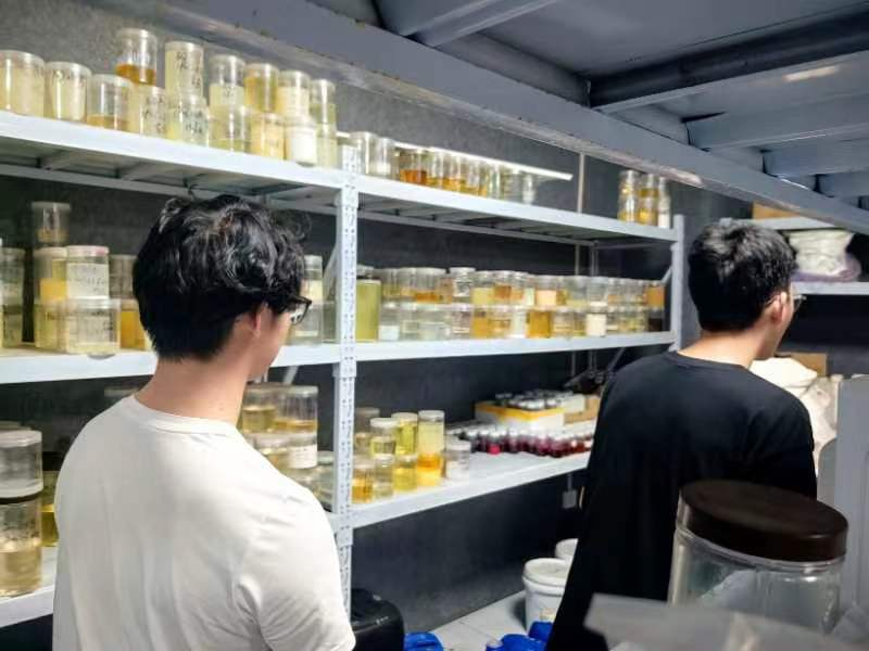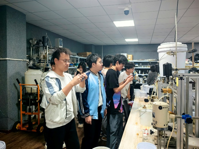 同学们第一次走进研发实验室,对琳琅满目的化学试剂、各式各样的沥青制品和仪器设备感到新奇,也亲身体验了沥青制品独特的气味和触感,对课本上的理论知识有了感官上的直接体验,现场就与谢总互动交流新型沥青产品的研发问题。
