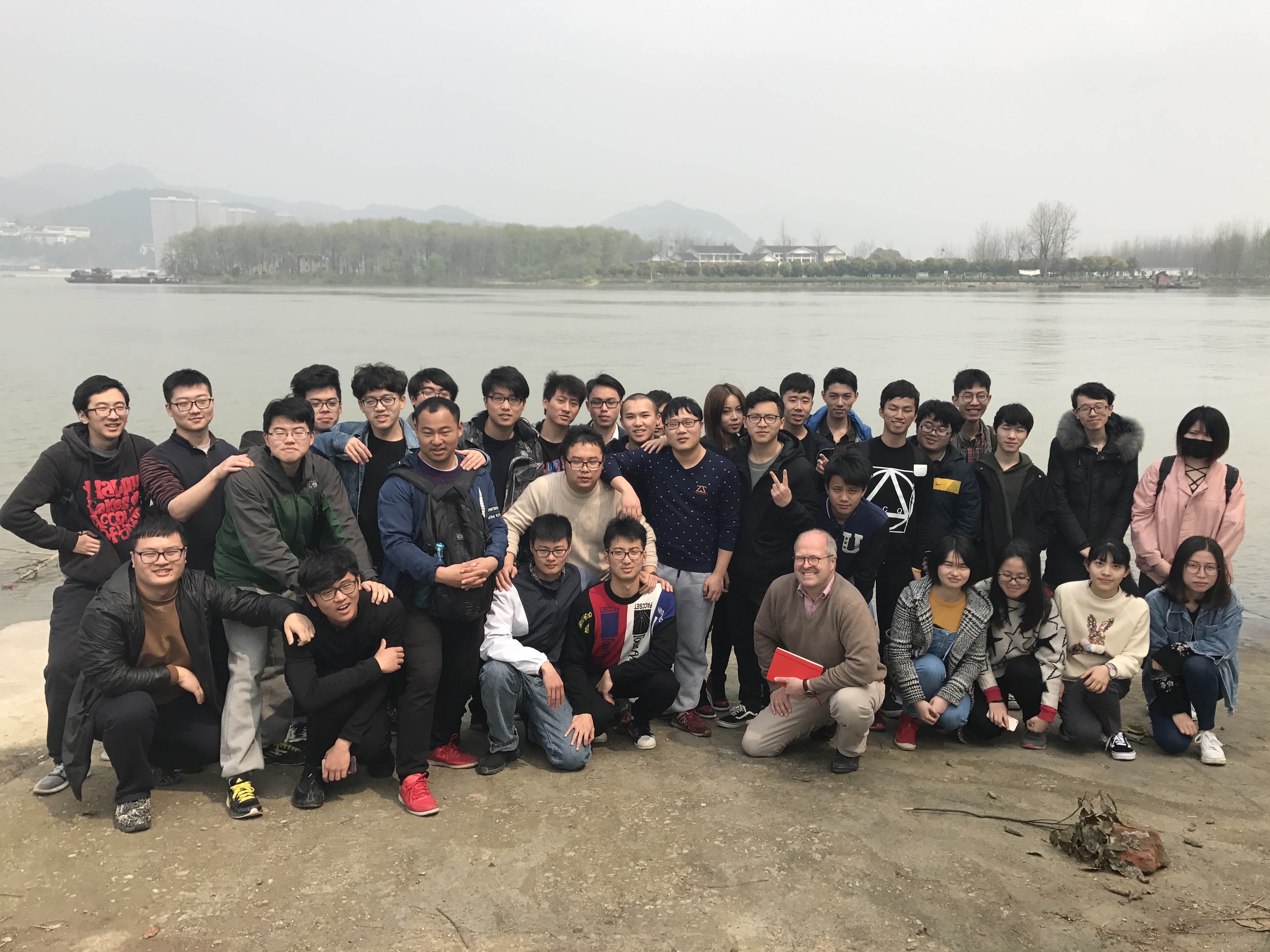 在参观完污水治理厂后,同学们又在库尔斯教授的带领下,在富春江旁开展考察,库尔斯教授用水文学的知识为同学们演示计算了污水厂排出水的流量对富春江整体流量以及水质的影响,并指导同学们开展了检测富春江的相关水文学指标。同学们纷纷表示此次学术考察对学习水文学及了解污水处理有着极其重要的意义。通过实地的考察学习,把书本上的知识运用到实际中,加深了对水文学相关概念、指标以及计算公式的理解。