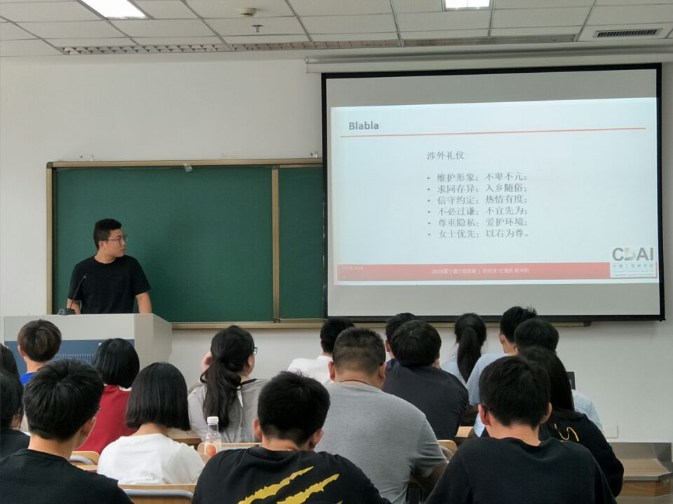 2018年6月27日13:30在中德D311面向2016级赴德夏令营同学召开行前教育,直属党支部副书记、学生工作负责人李成炜和两位带队老师沈潇扬、熊书利参加。