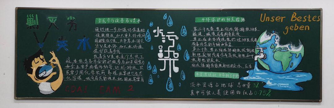 CDAI“五水共治”优秀黑板报评比正式结束,相信同学们通过在课余时间阅读板报上的文字,提升了对水资源的保护意识,也学到了有关水资源的新知识,同时也对国家“五水共治”的政策有了更深层次的理解。