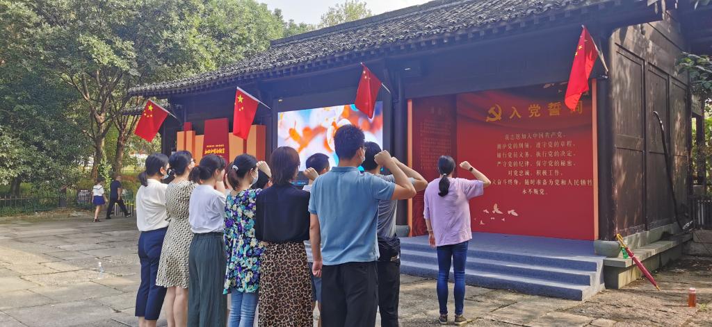 大家从绿堤东门入园重温入党誓词,沿途参观学习“我在西溪学党史”的相关篇章,了解家门口的党史、身边的红色故事。随后步行参观河渚街上龙舟陈列馆、蒋相公祠等,学习西溪湿地浓郁的民俗文化。最后大家前往深潭口学习党史第三篇章,乘坐游船驶离。