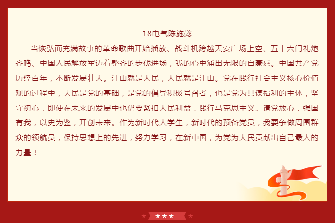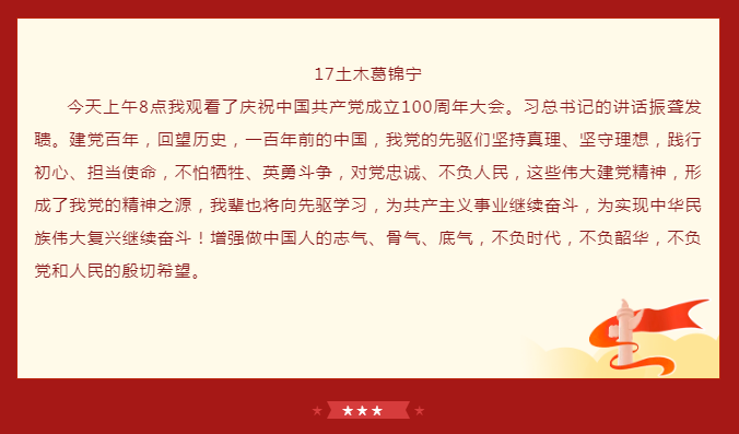 学院师生党员通过实时观看,对“没有共产党就没有新中国”有了更深刻的体会,纷纷表示心中有信仰,脚下就有了力量。中国共产党披荆斩棘,经风雨,战胜一次又一次艰难险阻,迎来如今的辉煌。作为党的一份子,行动上要自觉将学习、工作与国家的命运结合起来。范佳静书记表示,作为中文无码 直属党支部书记,将继续弘扬伟大的中国共产党精神,不断加强学院党建引领作用,推动学院内涵式发展,办好中德深度融合的中文无码 ,为培养一批批具有国际化、应用型工程背景的社会主义建设者和接班人而努力。“青年强则中国强”,她希望在座的青年学子们认真学习习近平总书记重要讲话精神,不断坚定理想信念、增强学识本领,把青春奋斗融入党和人民事业中。德国西海岸的学子们观看完大会回放后感慨到,生在这个伟大的时代,作为一名中国人无比骄傲。身处异国他乡的他们,更能感受到祖国的强大和温暖,也将坚定地听从党的召唤,祖国和人民的召唤,继承这份意志,将党员精神发扬光大。